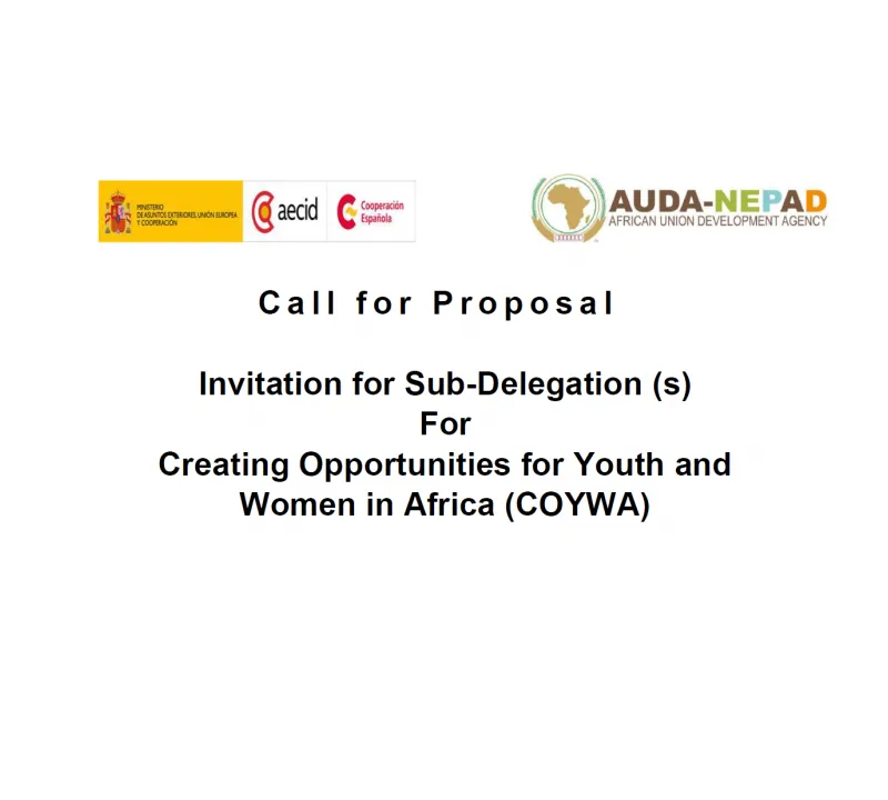 The African Union Development Agency (AUDA-NEPAD), together with the Spanish Agency for International Development Cooperation (AECID), launches the Creating Opportunities for Youth and Women in Africa (COYWA) Call for Proposals, aimed at accelerating socio-economic inclusion, empowerment, and gender
