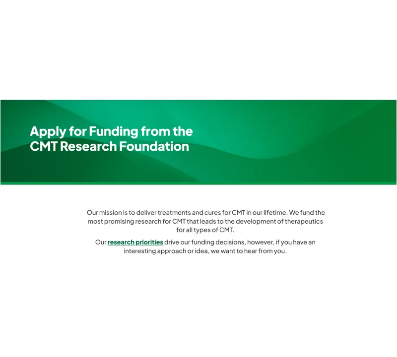 The CMT Research Foundation is committed to delivering treatments and cures for Charcot-Marie-Tooth disease (CMT) through targeted funding for high-potential scientific research. Grants support research leading to the development of therapeutics for all CMT types, based on the foundation’s research