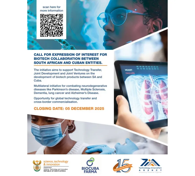 The Technology Innovation Agency (TIA), South Africa, and BioCubaFarma (BCF), Cuba, invite South African biotechnology companies, research institutions, universities, and healthcare innovators to express interest in collaborative R&D, technology transfer, and joint ventures for innovative biotech