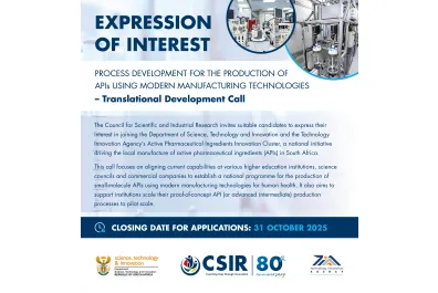 The Council for Scientific and Industrial Research (CSIR) is inviting suitable candidates to express their interest in joining a national initiative known as the Active Pharmaceutical Ingredients Innovation Cluster (APIIC). This cluster is driven by the Department of Science, Technology and Innovation (DSTI) and the Technology Innovation Agency (TIA), with the CSIR serving as the host.