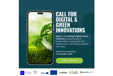 The Challenger Digital and Green Accelerator Programme (Challenger D&G) is an innovative, multi-country initiative dedicated to fostering impactful digital, green, and circular solutions for sustainability across Southern Africa. The programme directly addresses urgent regional and global challenges - climate change, food and water security, ecosystem resilience, energy transition, green mobility, smart built environments, waste management, and environmental data capacity.