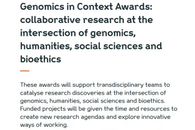 The Genomics in Context Awards 2026 support transdisciplinary research teams working at the intersection of genomics, humanities, social sciences and bioethics. These awards are designed to catalyse bold, discovery-led research agendas that integrate diverse disciplinary expertise and wider societal stakeholders from the earliest stages of research design.