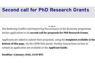 The Reducing Conflict and Improving Performance in the Economy (ReCIPE) Programme invites applications for its second Call for PhD Research Grants. The programme supports high-quality doctoral research that advances understanding of how economic growth, or the lack thereof, interacts with conflict, fragility, and peace, with strong emphasis on policy relevance in low- and middle-income countries.