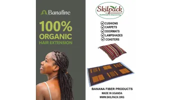 Skilpack Ltd Uganda is an eco-innovation company that turns banana pseudostems, a waste product from banana farming, into valuable biodegradable fiber products. We have made Banana fiber hair extensions that are itch-free, non-toxic, and eco-friendly. Other products include Carpets, rugs, caps